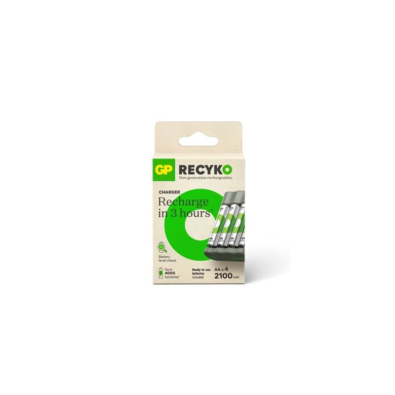GP Cargador de Pilas AA/AAA Con Pack 4 Pilas AA 2100Mah Recargables RECYKO
