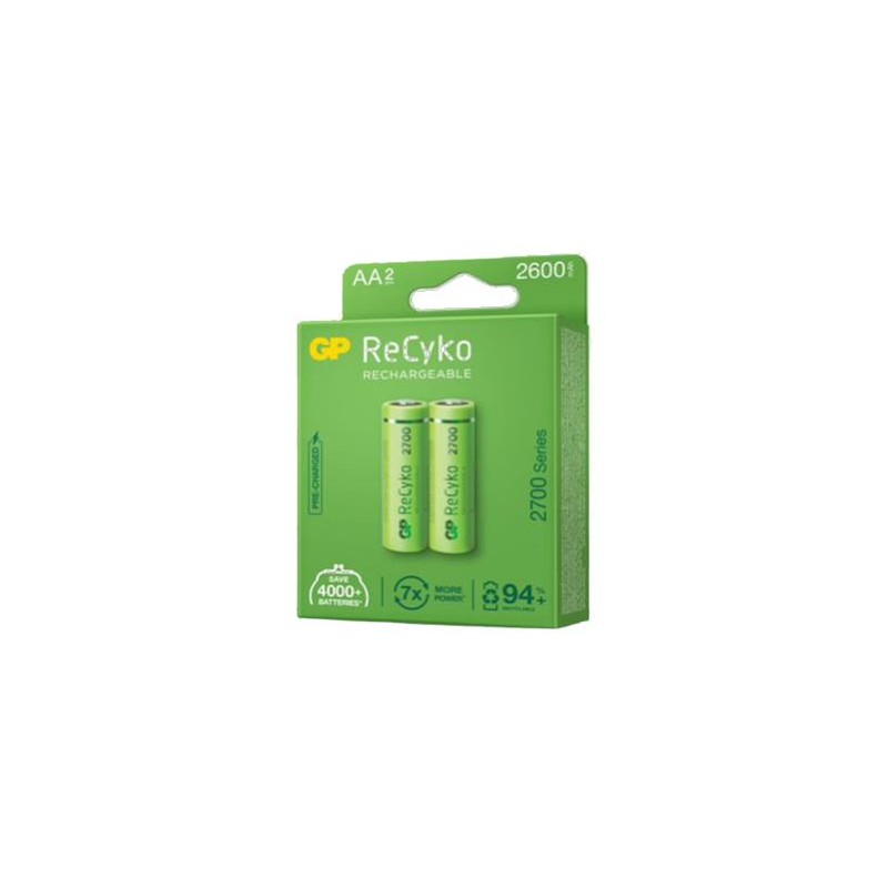 GP Pack de 2 Pilas PRE CARGADAS AA Recargables 2600mAh Recyko