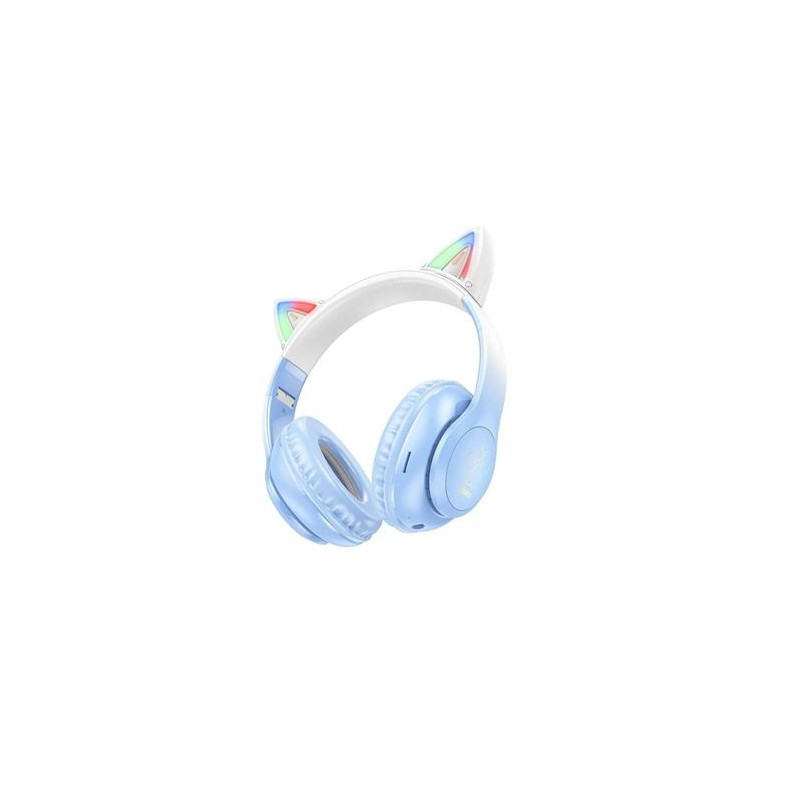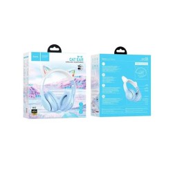 HOCO Auricular Casco Bluetooth Con Orejas Gato W42 Azul Cristal