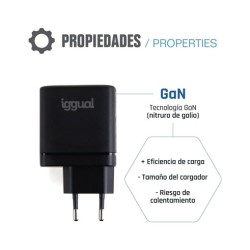 IGGUAL Cargador Red Rapido USB Tipo-C 45W 5/9/15/20v 2.4a a 3a con proteccion