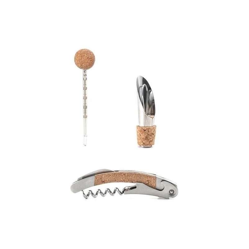 KIKKERLAND Juego de Vino 3 Piezas de Corcho BA67