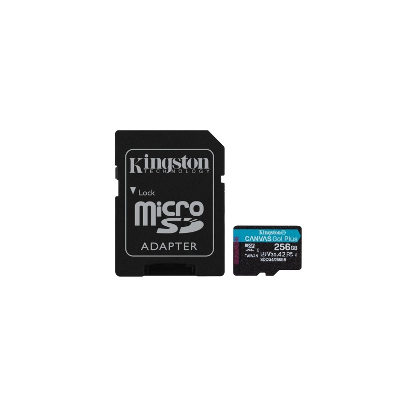 Kingston Technology Tarjeta microSDXC Canvas Go Plus Gen4 de 256 GB 200 MB/s A2 U3 V30 y adaptador