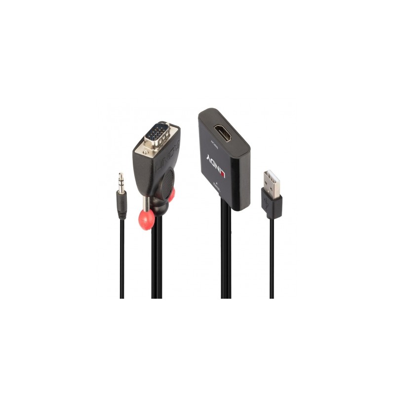 Lindy 38284 adaptador de cable de vídeo VGA (D-Sub) + 3 5mm HDMI + USB Negro