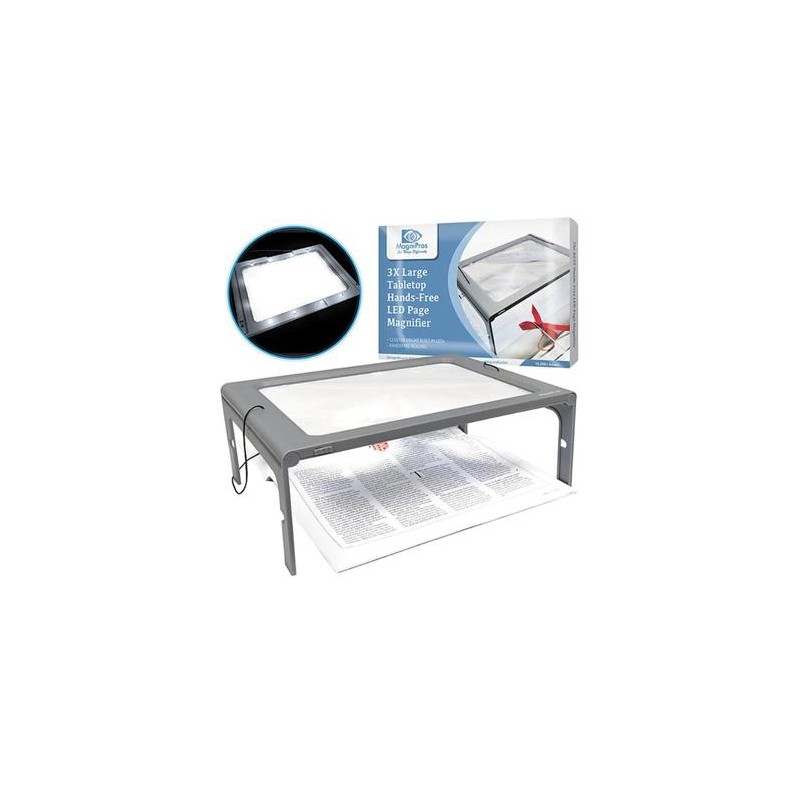 MAGNIPROS Lupa Luz Led de Pagina Completa A4 3X Con Patas Plegables Para Lectura Manos Libres 42120