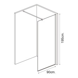 MAMPARA DUCHA PANEL 1 HOJA CRISTAL FIJO NEGRA BERLIN BENOTTI (195X90 8MM)