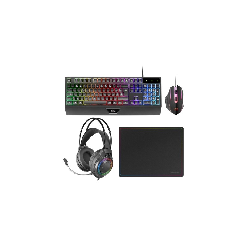 Mars Gaming MCP124PRO Combo Gaming 4en1 Teclado RGB H-Mech con Reposamuñecas Ratón RGB 3200DPI y Switches HUANO Auriculares