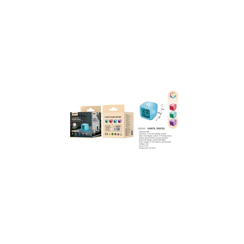 MAYOU Reloj Despertador Digital Temperatura YH0078 Con Luz Led De Colores