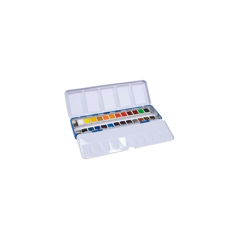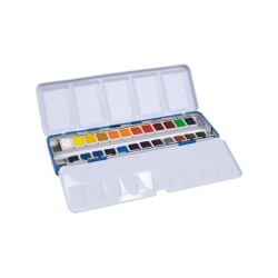 Milan Art Estuche Metalico de 24 Acuarelas Medio Godet - Opacos y Resistentes a la Luz - Mezclables - Bandeja Abatible - Colo