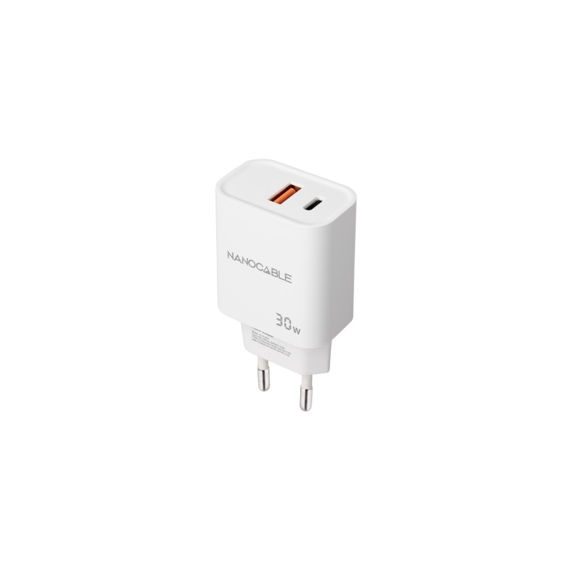 Nanocable Cargador USB-C/PD + USB-A/QC 30W Blanco
