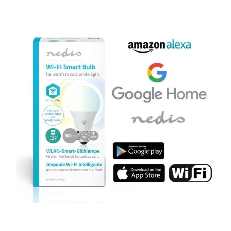 Nedis Bombilla inteligente E27-9W Alexa Google