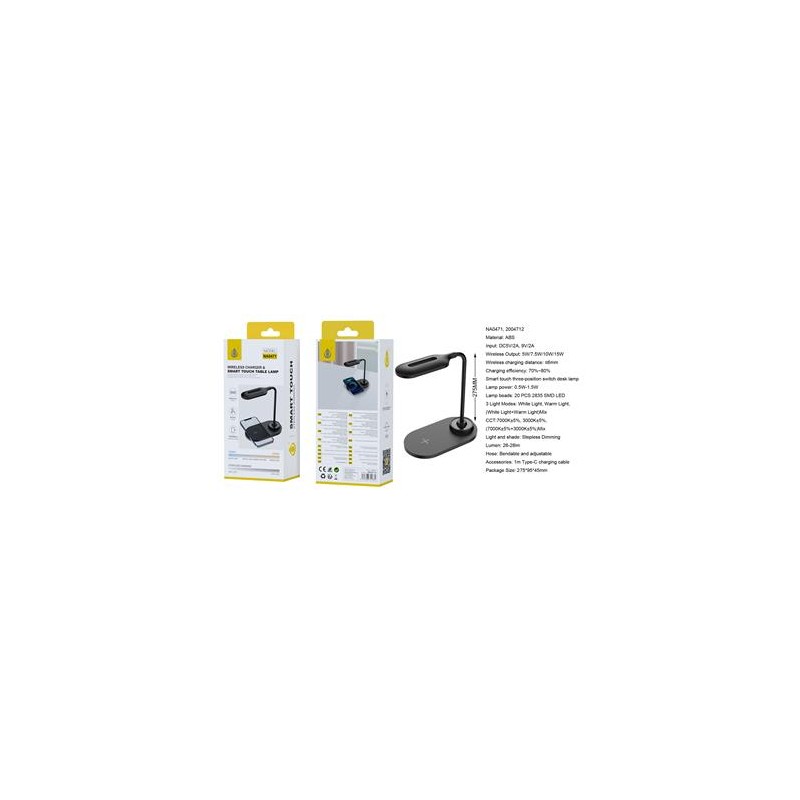 ONE PLUS Lampara Sobremesa Tactil Con Cargador Inalambrico Para Movil 15W NA0471 Negra