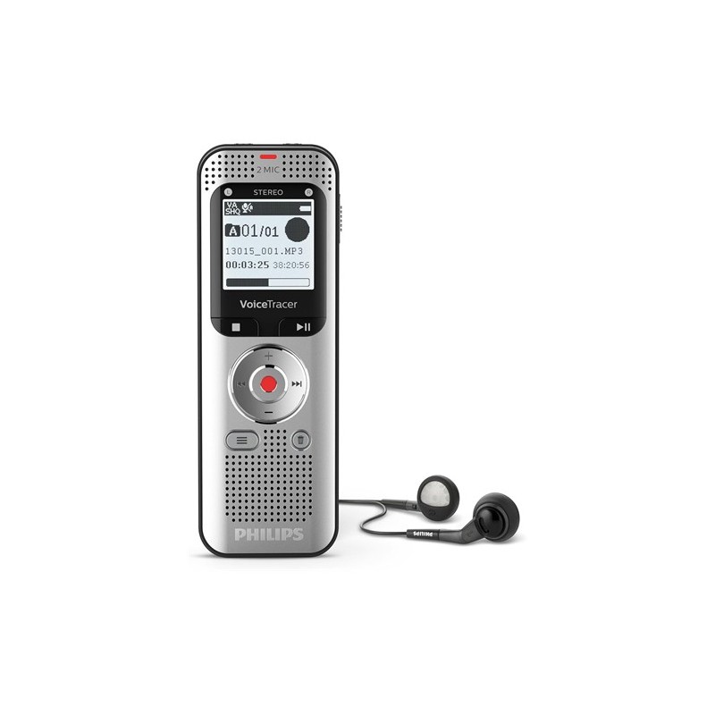 PHILIPS Grabadora de Voz Digital DVT2050 Con 2 Microfonos MP3 Radio Fm 8Gb Con Auriculares