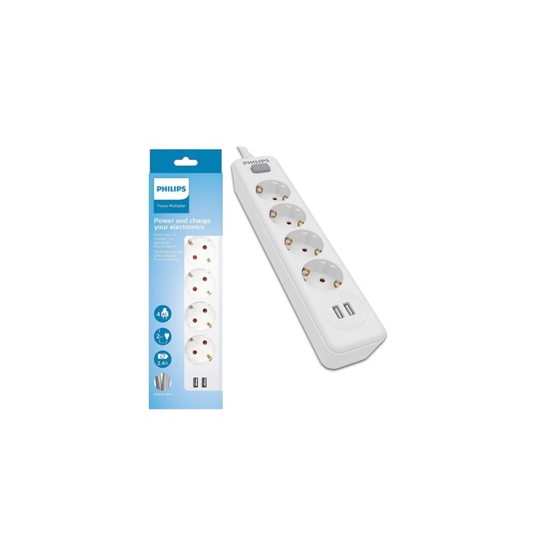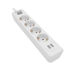 PHILIPS Regleta 4 Tomas Schuko Blanca 2 Puertos Usb Con Interruptor Cable 2Mtrs SPN3042WA/19