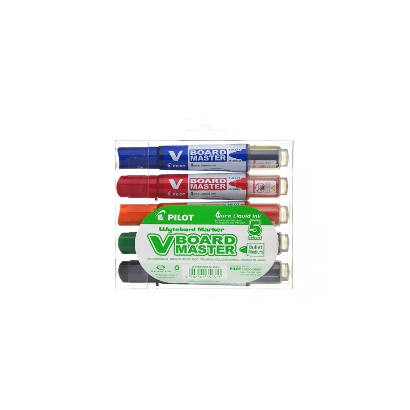 Pilot V-Board Master marcador 5 pieza(s) Punta redonda Negro Azul Verde Naranja Rojo