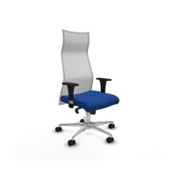 Piqueras y Crespo Albacete malla sincro malla blanca similpiel azul brazos 1D base aluminio ruedas 65 mm nailon