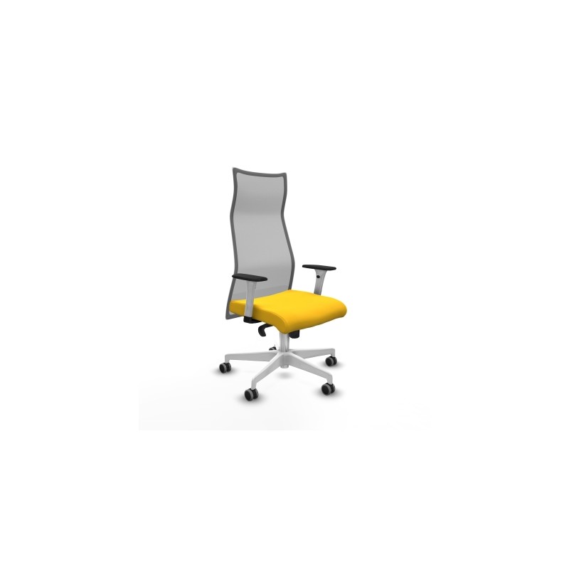 Piqueras y Crespo Albacete malla sincro malla gris similpiel amarillo brazos blancos base blanca ruedas 65mm engomadas