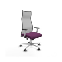 Piqueras y Crespo Albacete malla sincro malla gris similpiel morado brazos blancos base aluminio ruedas 65mm engomadas