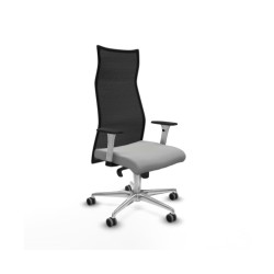 Piqueras y Crespo Albacete malla sincro malla negra similpiel gris claro brazos blancos base aluminio ruedas 65mm engomadas