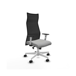 Piqueras y Crespo Albacete malla sincro malla negra similpiel gris claro brazos blancos base blanca ruedas 65 mm nailon