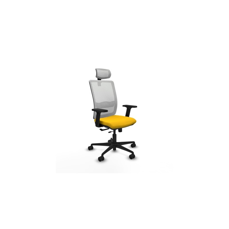Piqueras y Crespo Haches traslack malla blanca bali amarillo brazos 2D base nailon cabecero malla 2D ruedas 65mm nailon