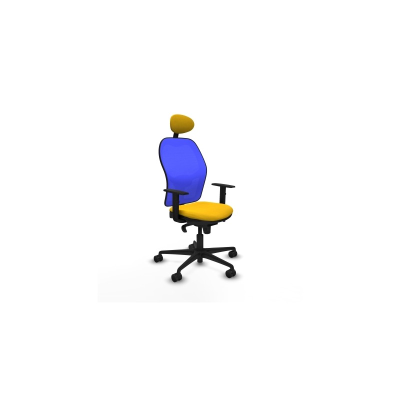 Piqueras y Crespo Jorquera sincro malla azul bali amarillo brazos 1D base nailon cabecero fijo ruedas 65mm nailon