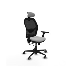 Piqueras y Crespo Jorquera traslack malla negra similpiel gris claro brazos 3D base nailon cabecero 2D ruedas 65mm engomada