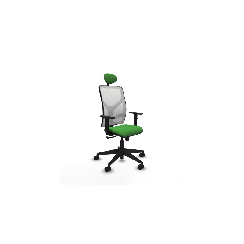 Piqueras y Crespo Motilla sincro malla blanca bali verde brazos 1D base piramidal cabecero fijo ruedas 65mm nailon