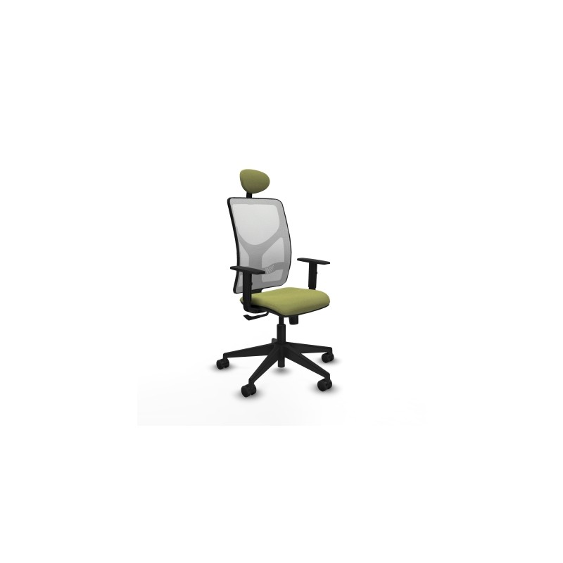 Piqueras y Crespo Motilla sincro malla blanca bali verde oliva brazos 1D base piramidal cabecero fijo ruedas 65mm nailon