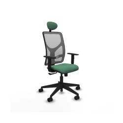 Piqueras y Crespo Motilla sincro malla gris bali verde esmeralda brazos 1D base piramidal cabecero fijo ruedas 65mm nailon