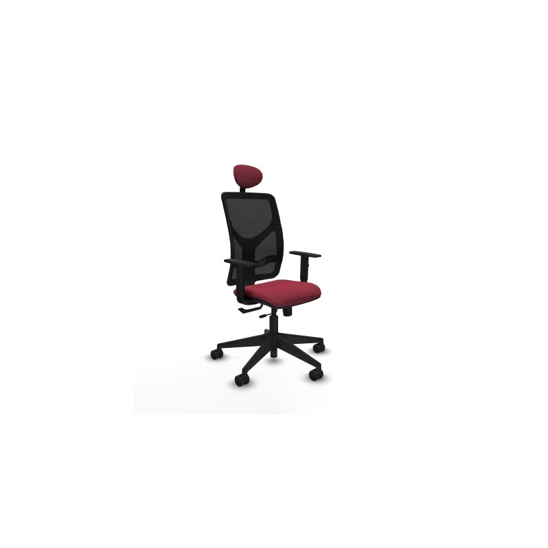 Piqueras y Crespo Motilla traslack malla negra bali granate brazos 1D base piramidal cabecero fijo ruedas 65mm nailon
