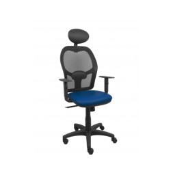 Piqueras y Crespo Silla Alocén malla negra asiento similpiel azul marino brazos regulables cabecero fijo
