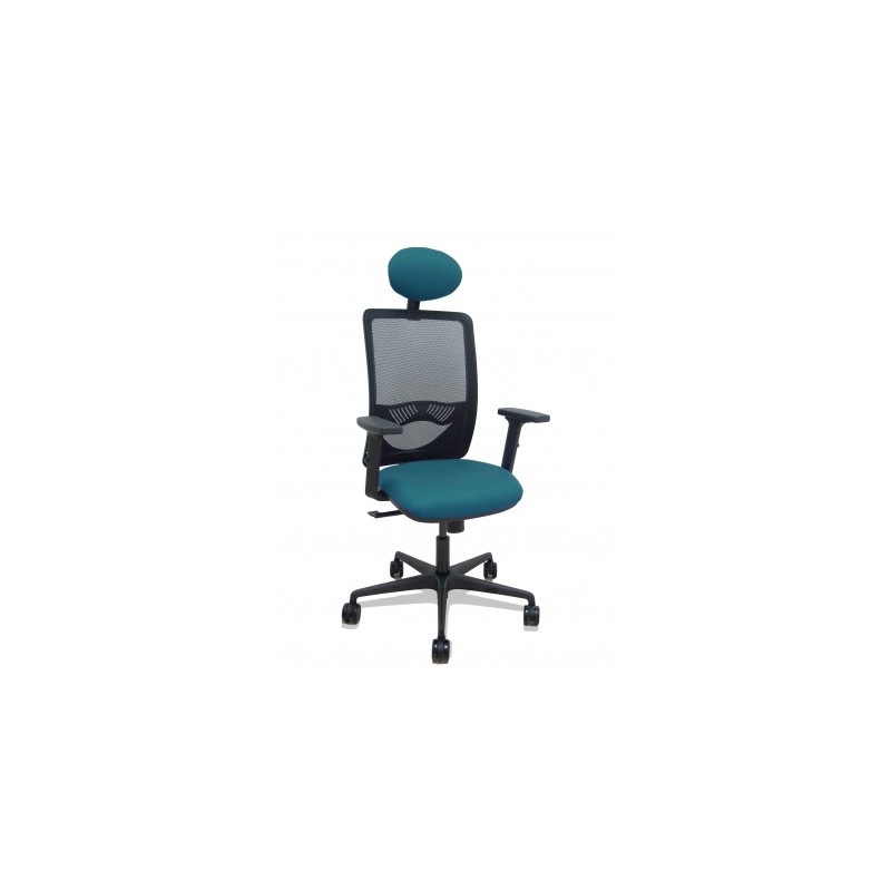 Piqueras y Crespo Silla Zulema sincro malla negra asiento bali verde petróleo brazos 2D ruedas 65mm cabecero