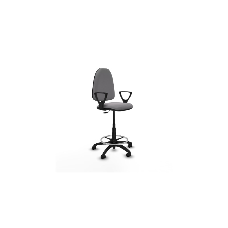 Piqueras y Crespo Taburete A?na CP similpiel gris brazos fijos base poliamida ruedas nailon 50mm