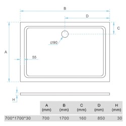 PLATO DUCHA 1700X700X30 LIGERO CARGA MINERAL BLANCO RECT BENOTTI