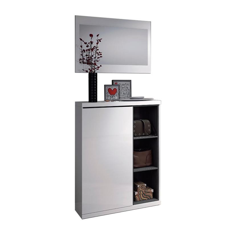 RECIBIDOR ZAPATERO 1P +ESPEJO 108X79X25CM BL. BRILLO/GRIS CENIZA MOMI