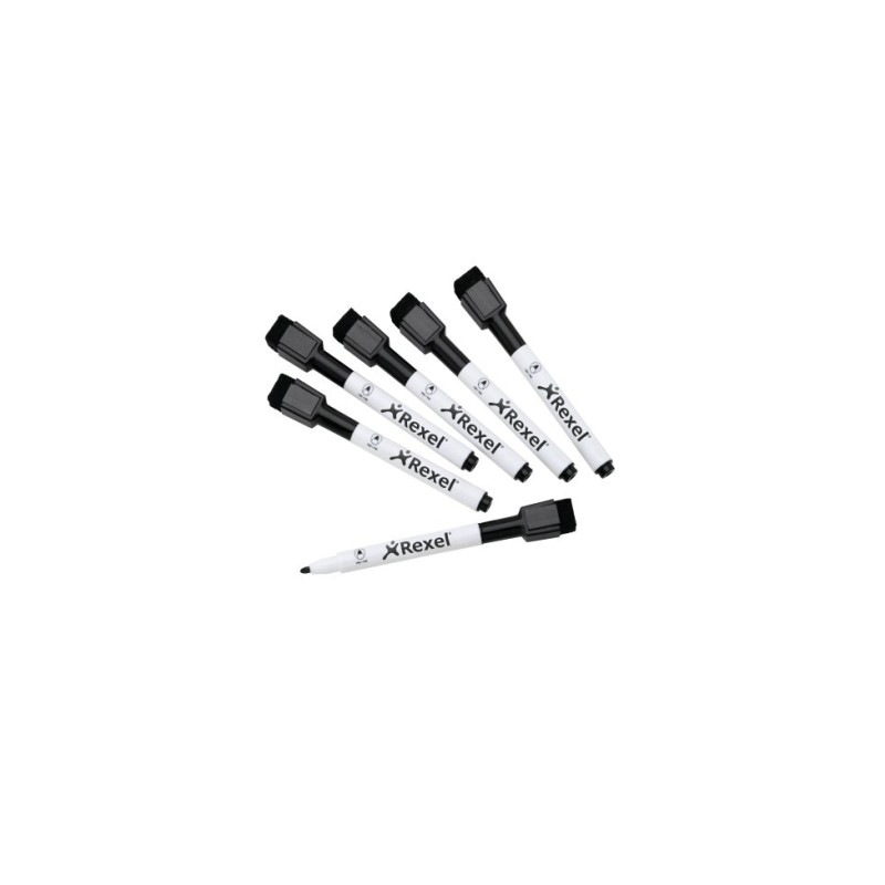 Rexel Rotuladores borrado en seco magnéticos negros (6)