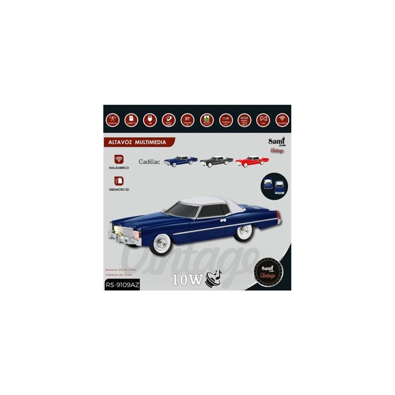 SAMI Altavoz Inalambrico Vintage Coche CADILLAC Azul 10W RS-9109 TWS FM Usb Micro Sd