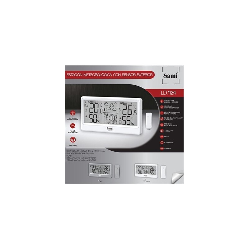 SAMI Estacion Barometrica LD-1124 con Sensor Fase lunar Calendario Temperatura Interior Exterior Hum