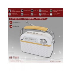 SAMI Radio Portatil Vintage AM/FM/SW Con BT Ranura Usb y Micro SD RS-1811 Blanco