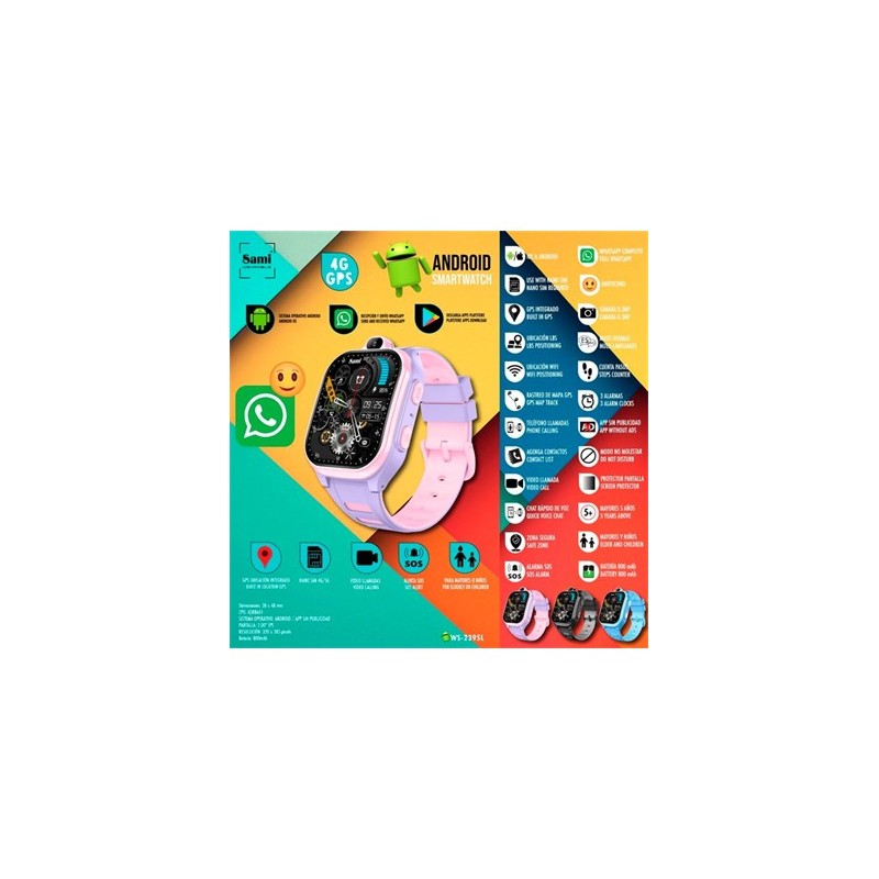 SAMI Reloj Smartwatch 4G GPS WS-2395 Junior Para Niños Android Whatsapp Rosa
