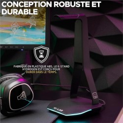 SOPORTE AURICULARES THE G-LAB K-STAND HYDROGEN NEGRO / RETROILUMINADO / 2xUSB-A + 1xUSB-C / K-STAND-HYDROGEN