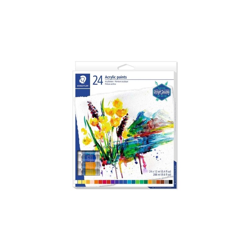 Staedtler 8500 Pack de 24 Tubos de Pintura Acrilica - Facil de Mezclar - Para Amplia Variedad de Superficies - Colores Surtid