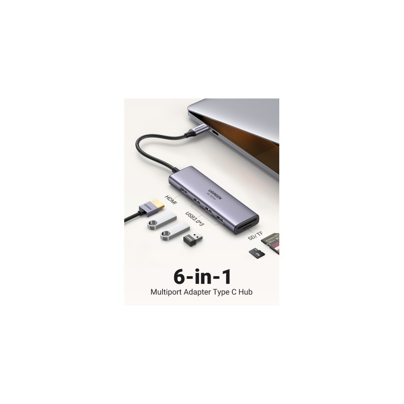 Ugreen CM511 5-in-1 Adapter USB-C Hub to 3x USB3.0 + HDMI + TF/SD Gray