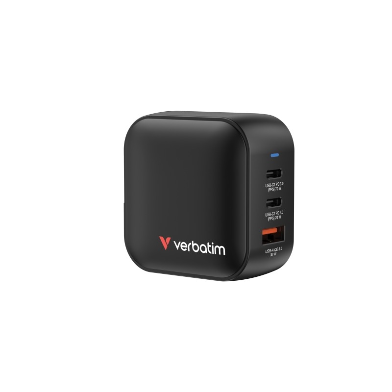 Verbatim Mini GaN Charger 70W Universal Negro Corriente alterna Carga rápida Interior